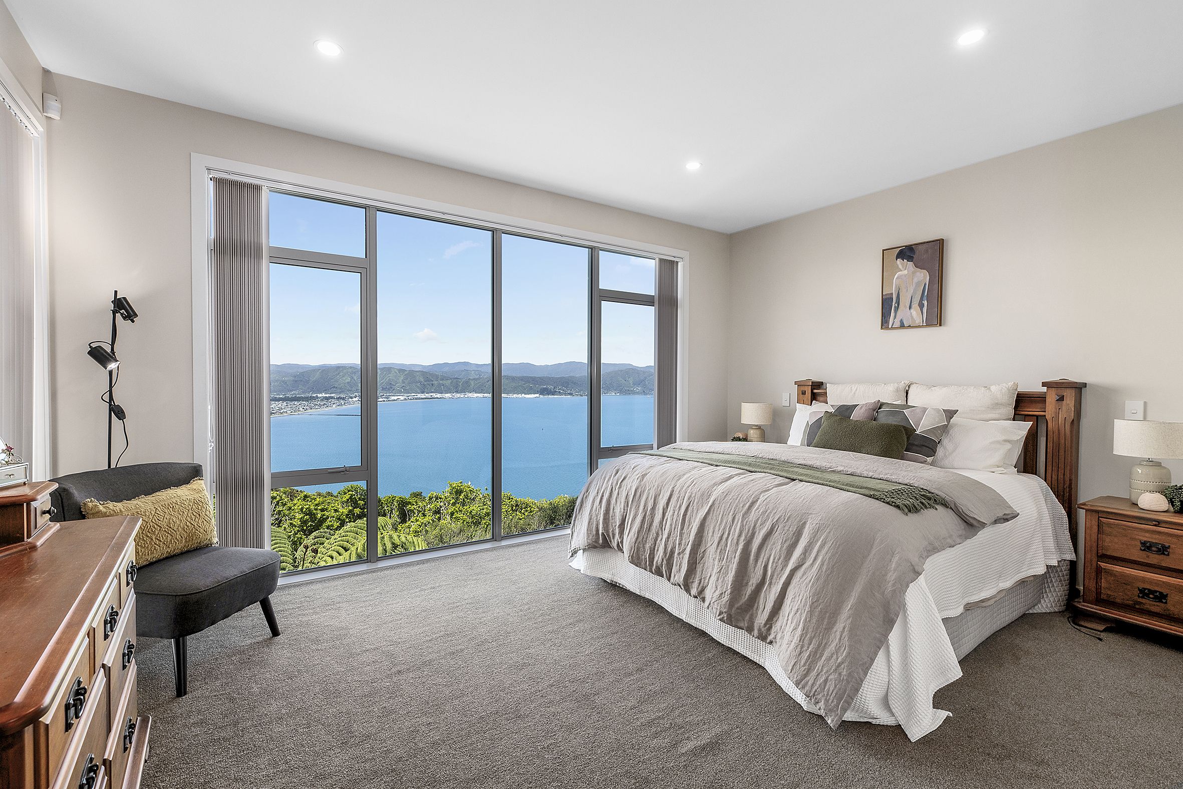 • Super-sized master bedroom with walk-in wardrobe, stylish ensuite, and beautiful sea views.