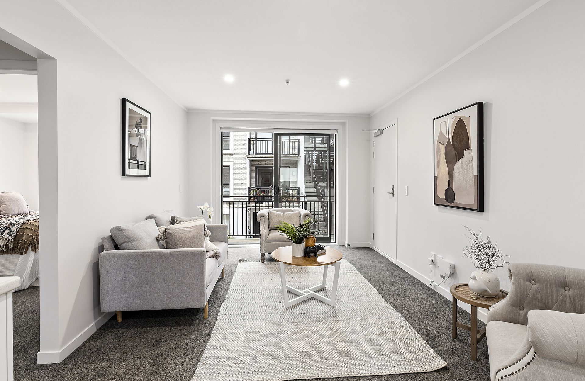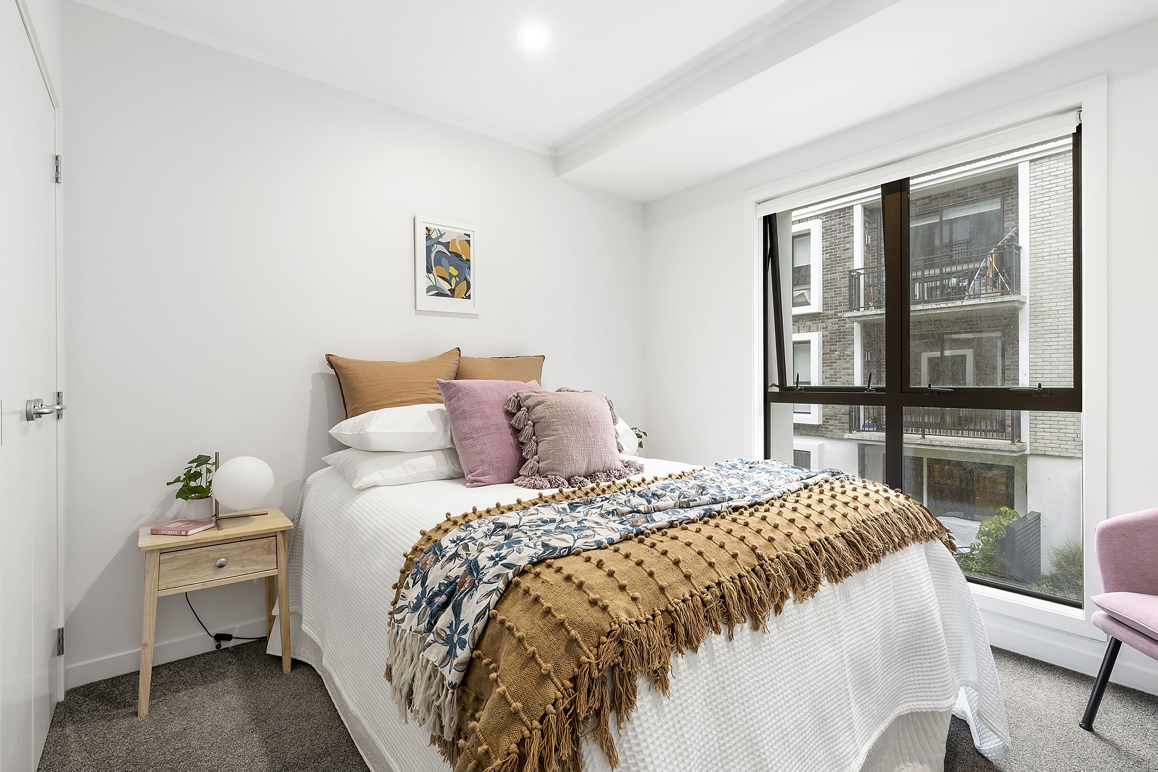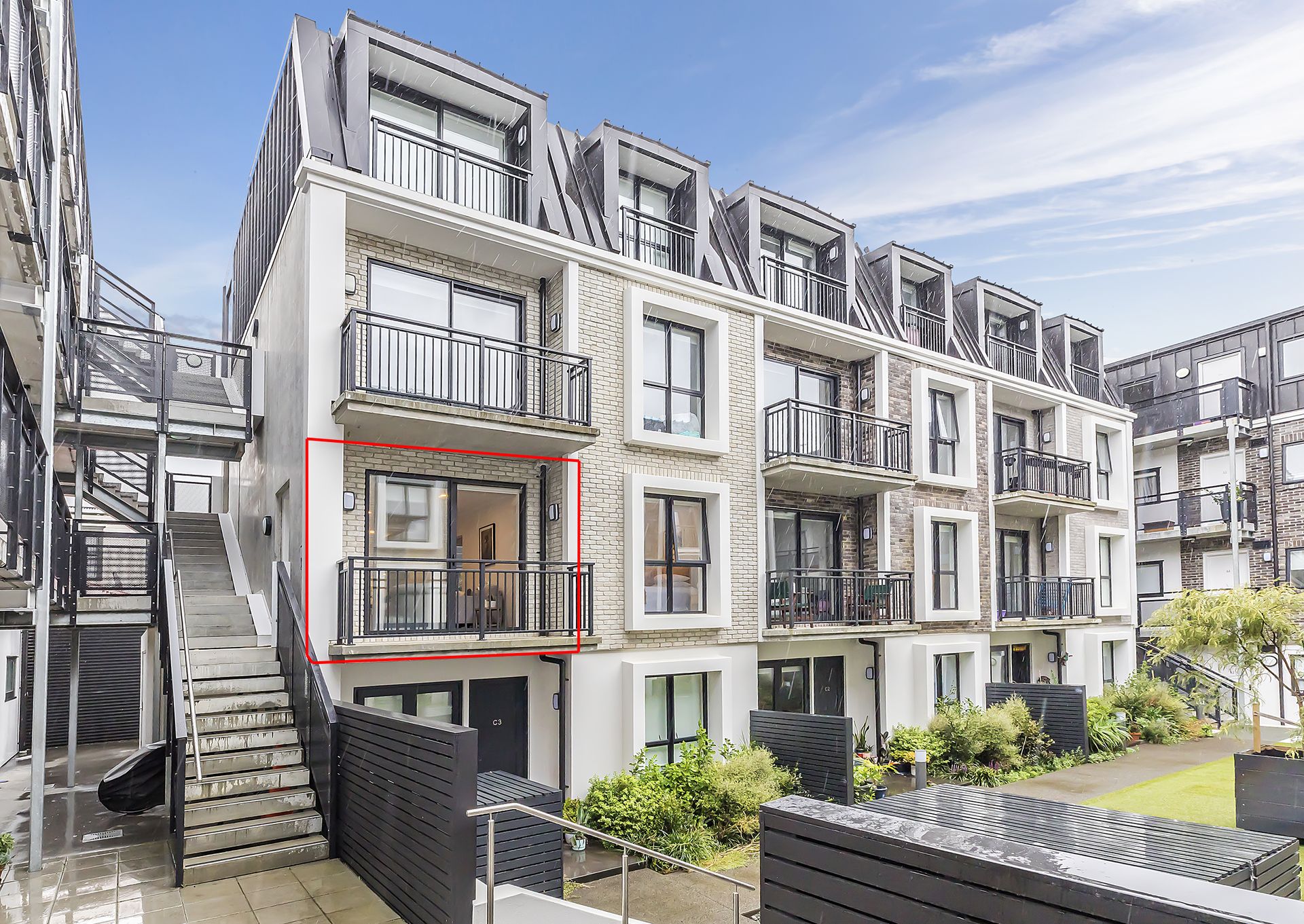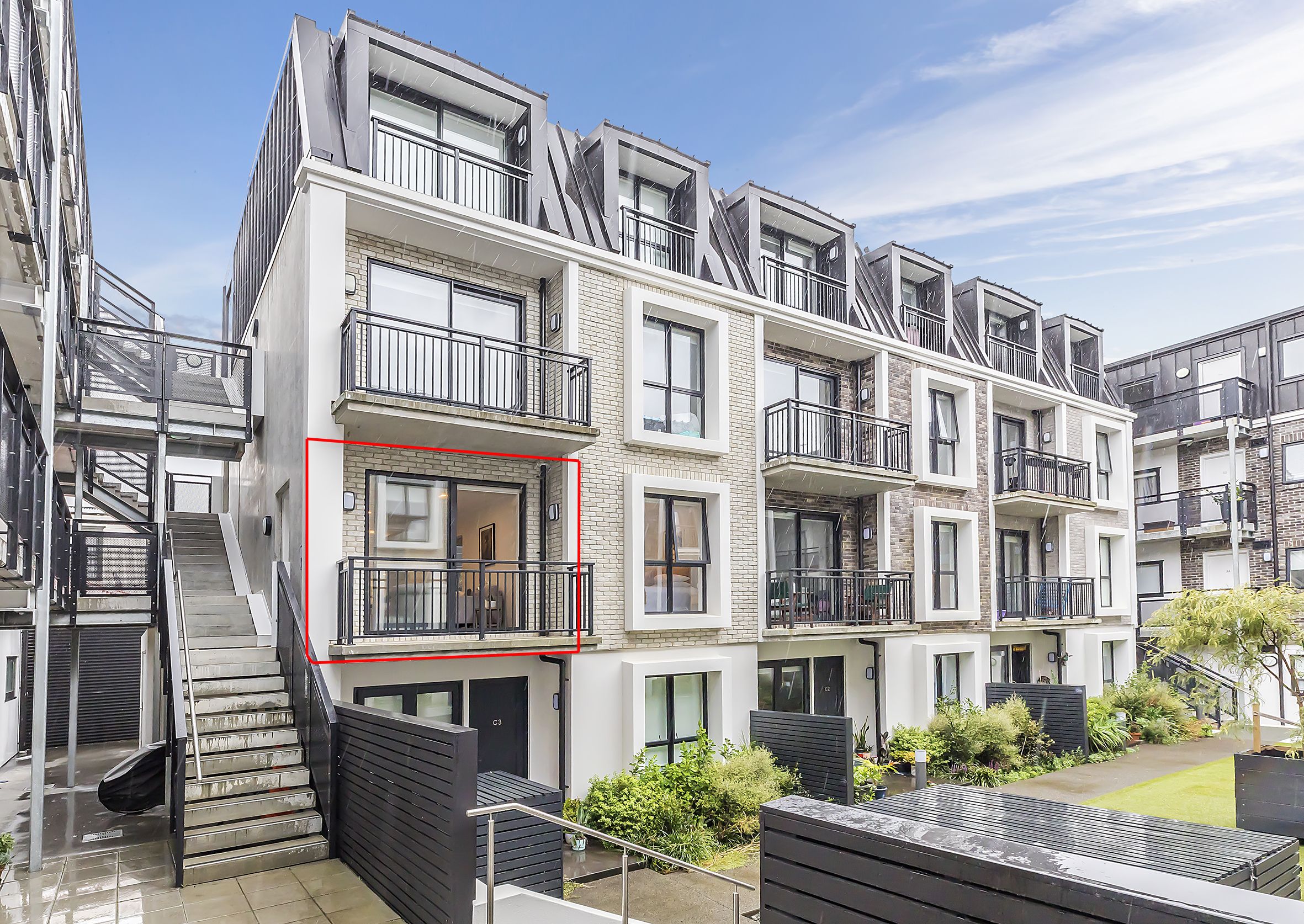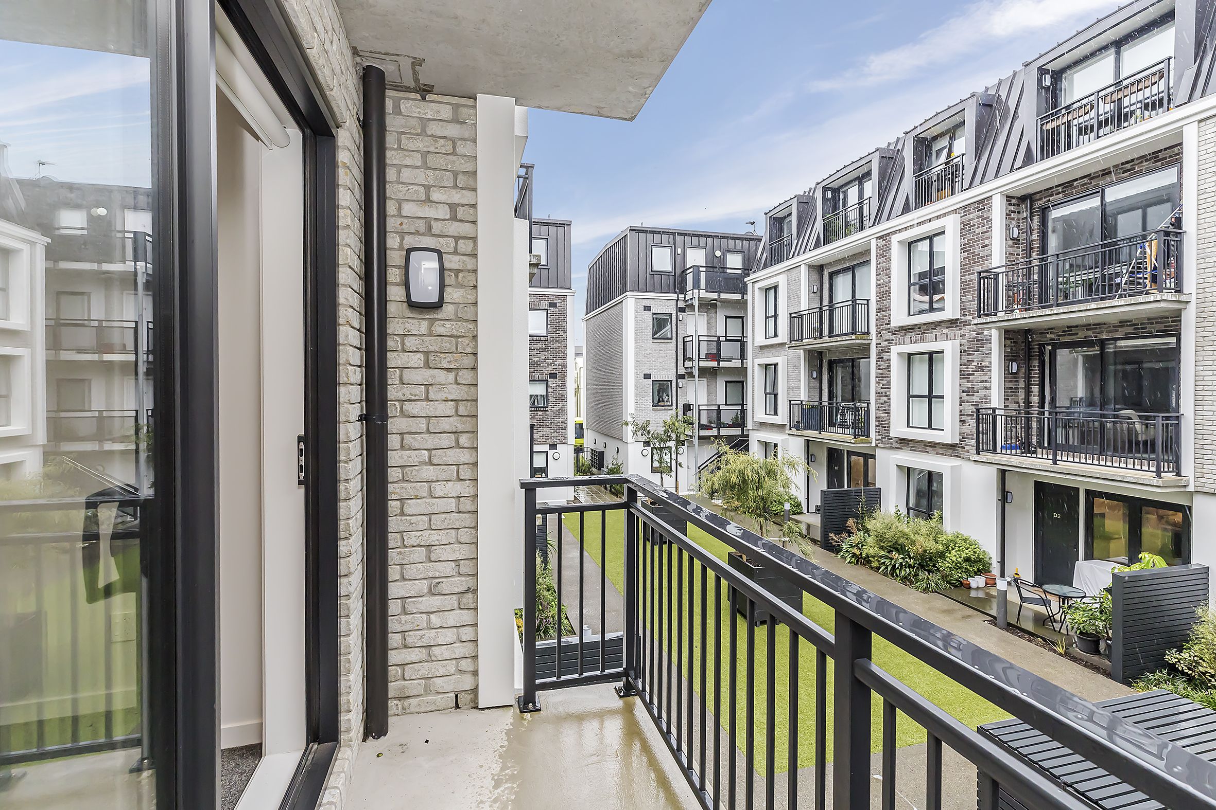 • Light filled living space opening out to an intimate balcony overlooking the central courtyard