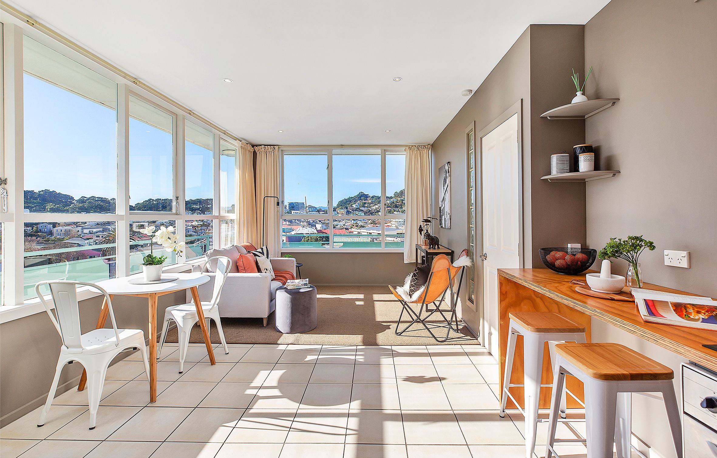 The uninterupted views over the city while basking in the sun from the north facing wrap around windows give this apartment the "Penthouse" feel without having to pay the price.