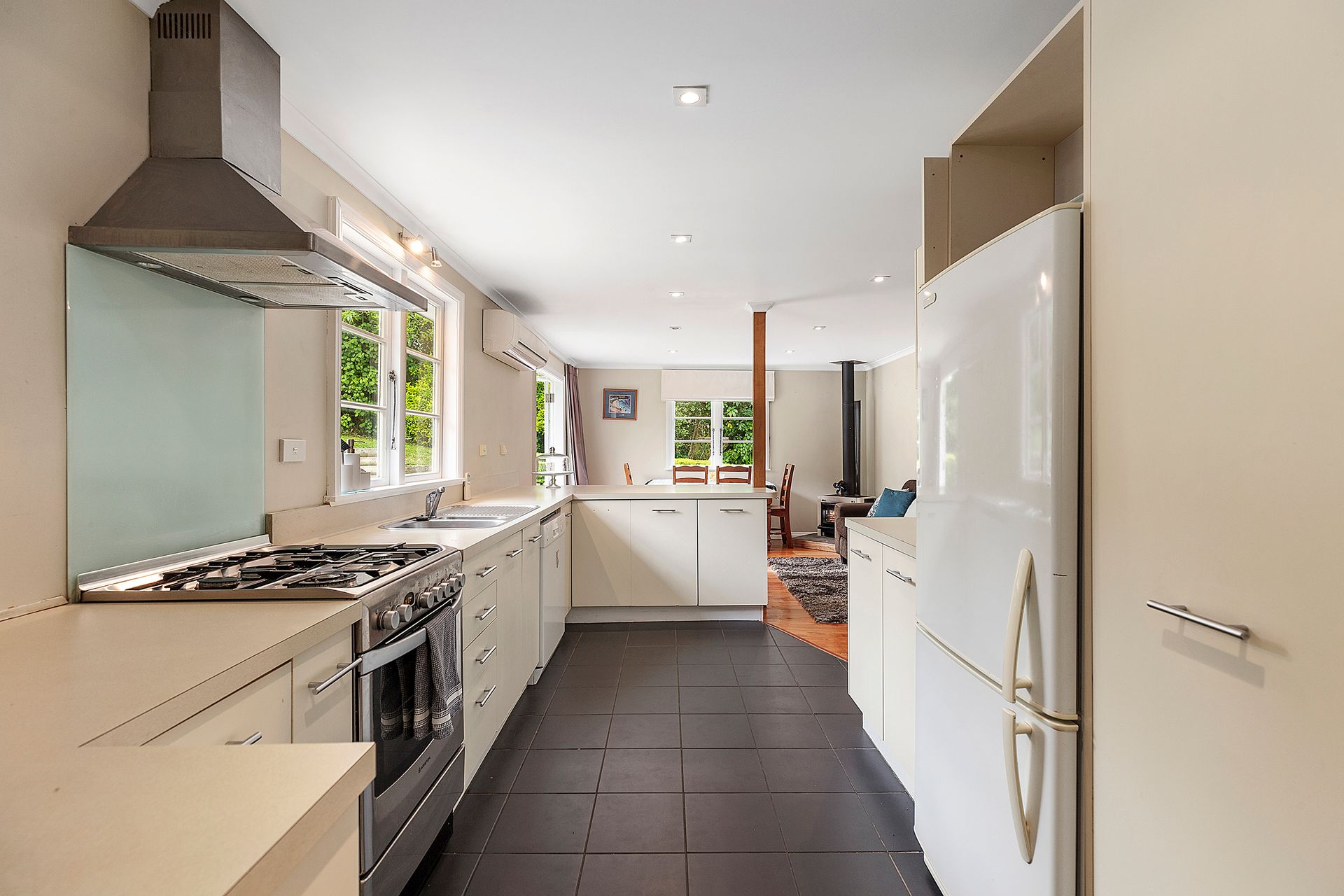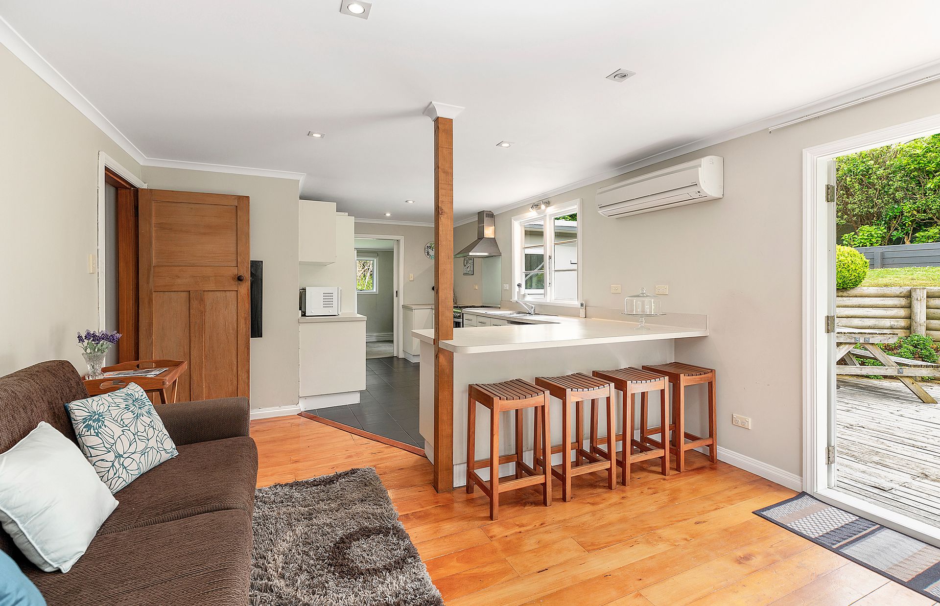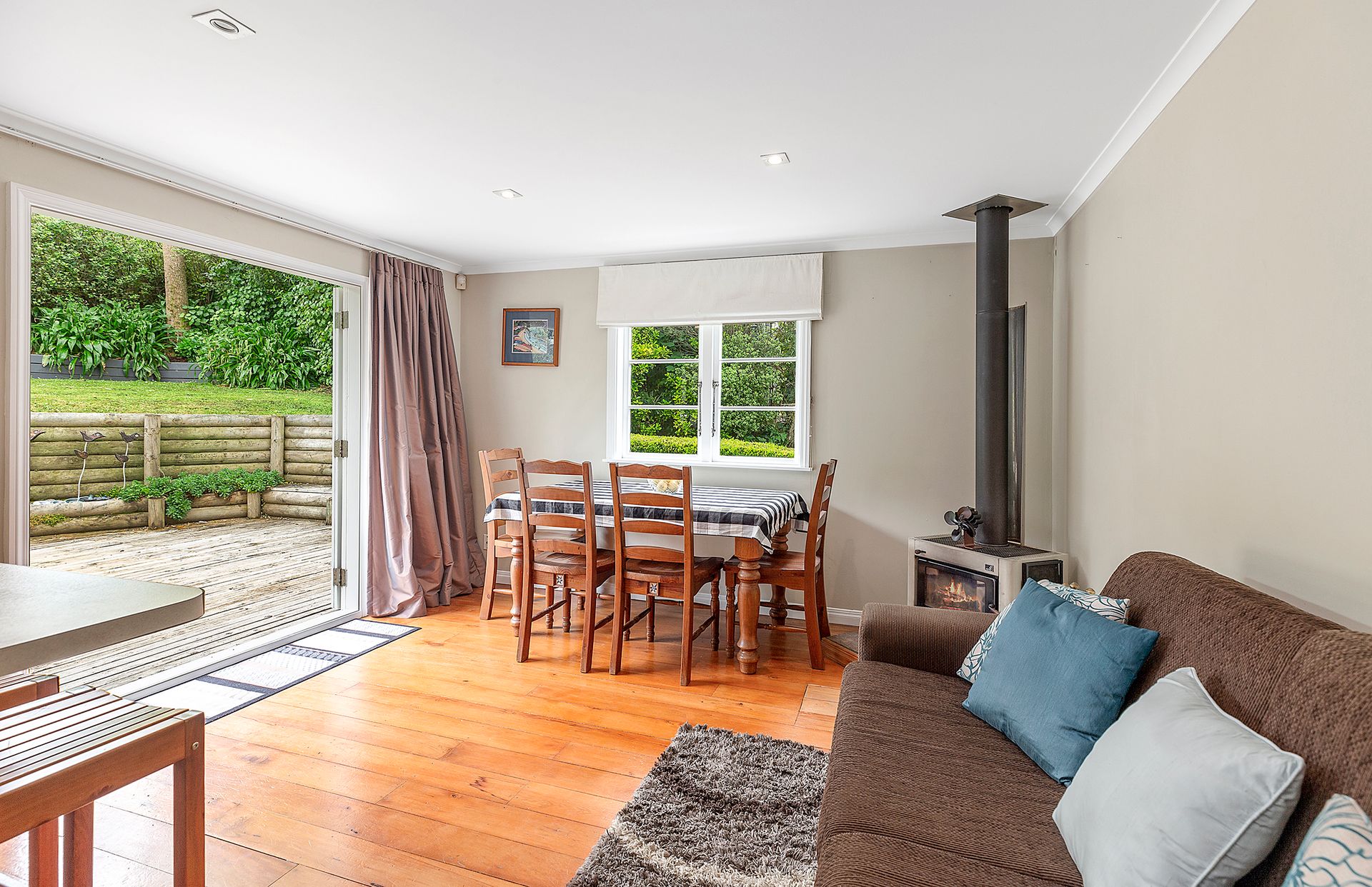 - Open plan kitchen with handy island seating, space for dining and reclining. Enjoying flow to a sun-drenched deck and section with stunning established planting, this is living made easy