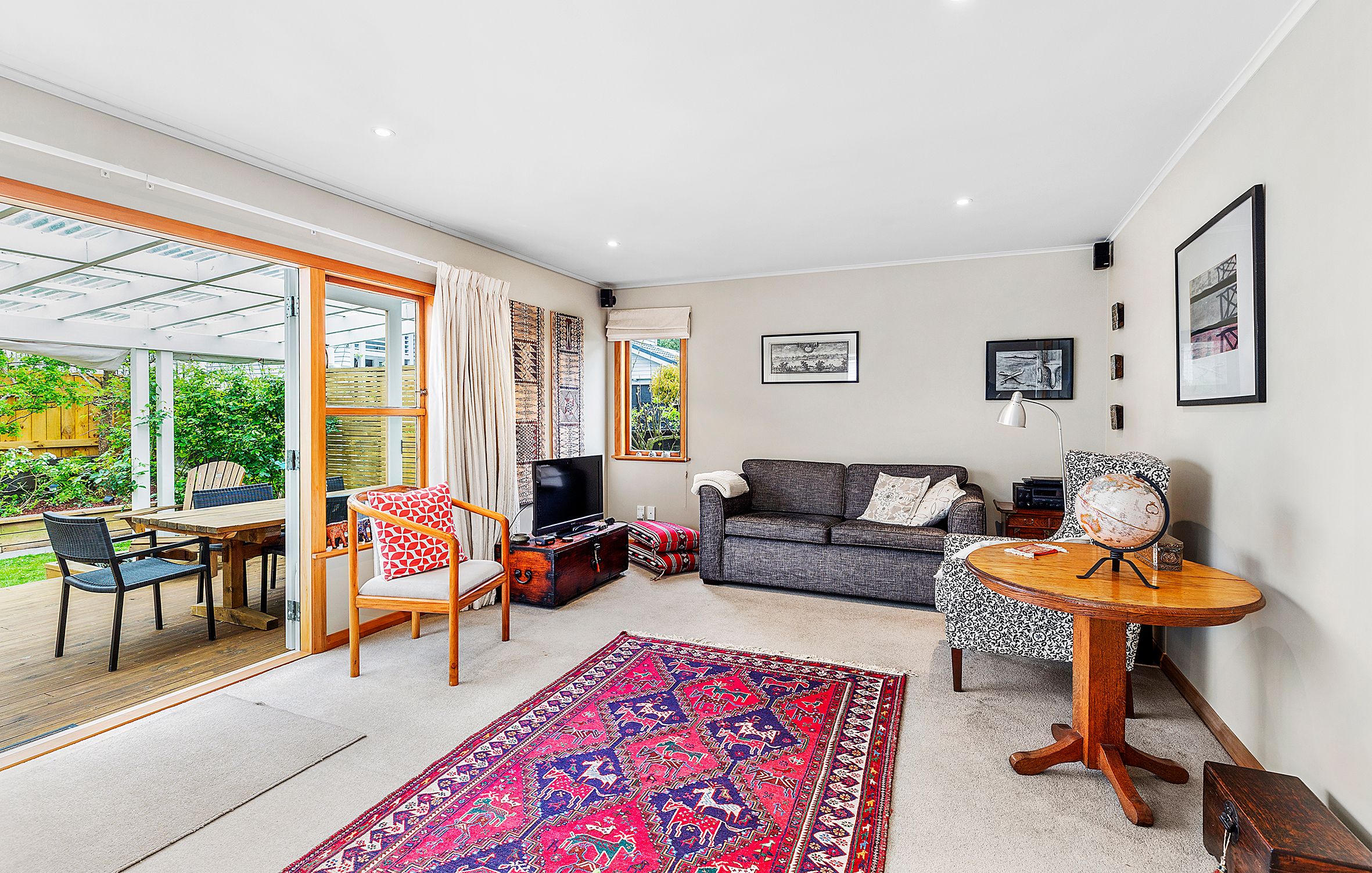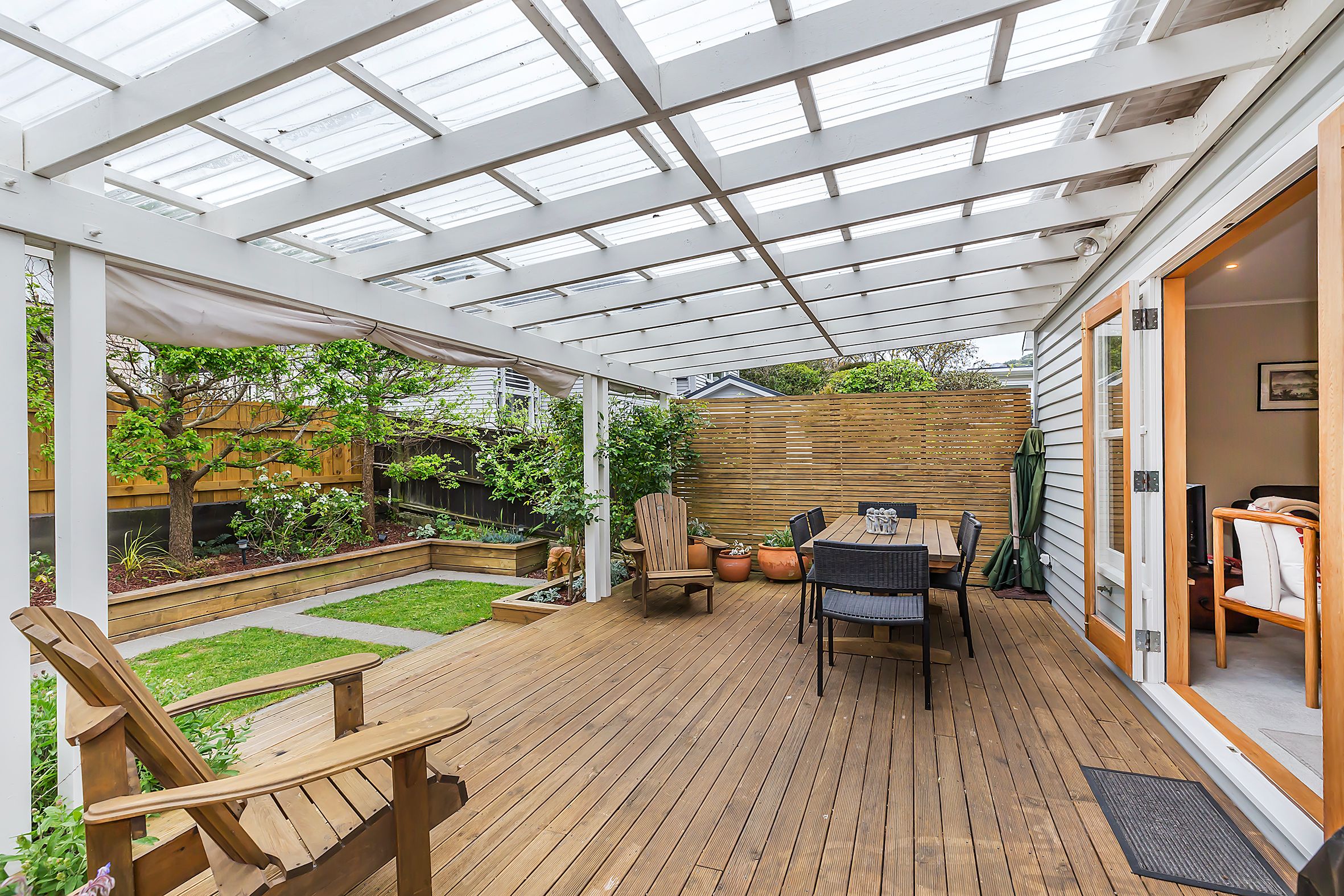 Entertain, or just enjoy the large, private, sunny, indoor-outdoor living, covered deck area...