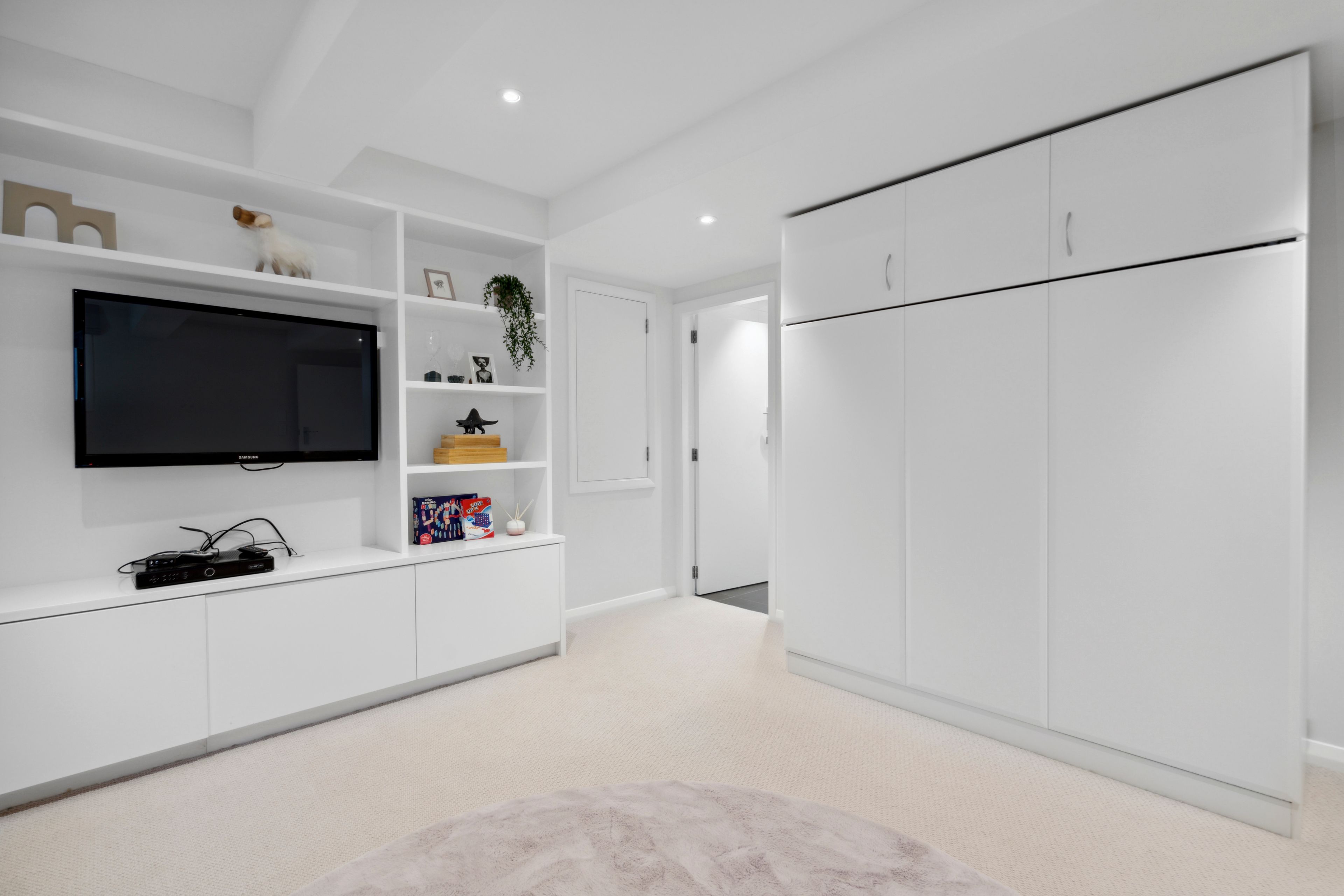 The kitchen features top-of-the-line European appliances and is designed for a seamless connection to the dining room, a cosy fireplace, and the adjacent living room. The home highlights character elements, including Rimu timber flooring. One notable feature is the multiple living areas spread across three levels to accommodate various family dynamics. The main floor includes well proportioned sitting and dining rooms, a guest bedroom, a separate laundry, and a home office. The lower level boasts a spacious living quarter with an exquisite adjoining bathroom, suitable for a theatre room or guest suite, complete with bespoke cabinetry and a cleverly designed fold-away wall bed. On the upper level, there are three generous bedrooms and a family bathroom. The home is further enhanced with a generous double garage.