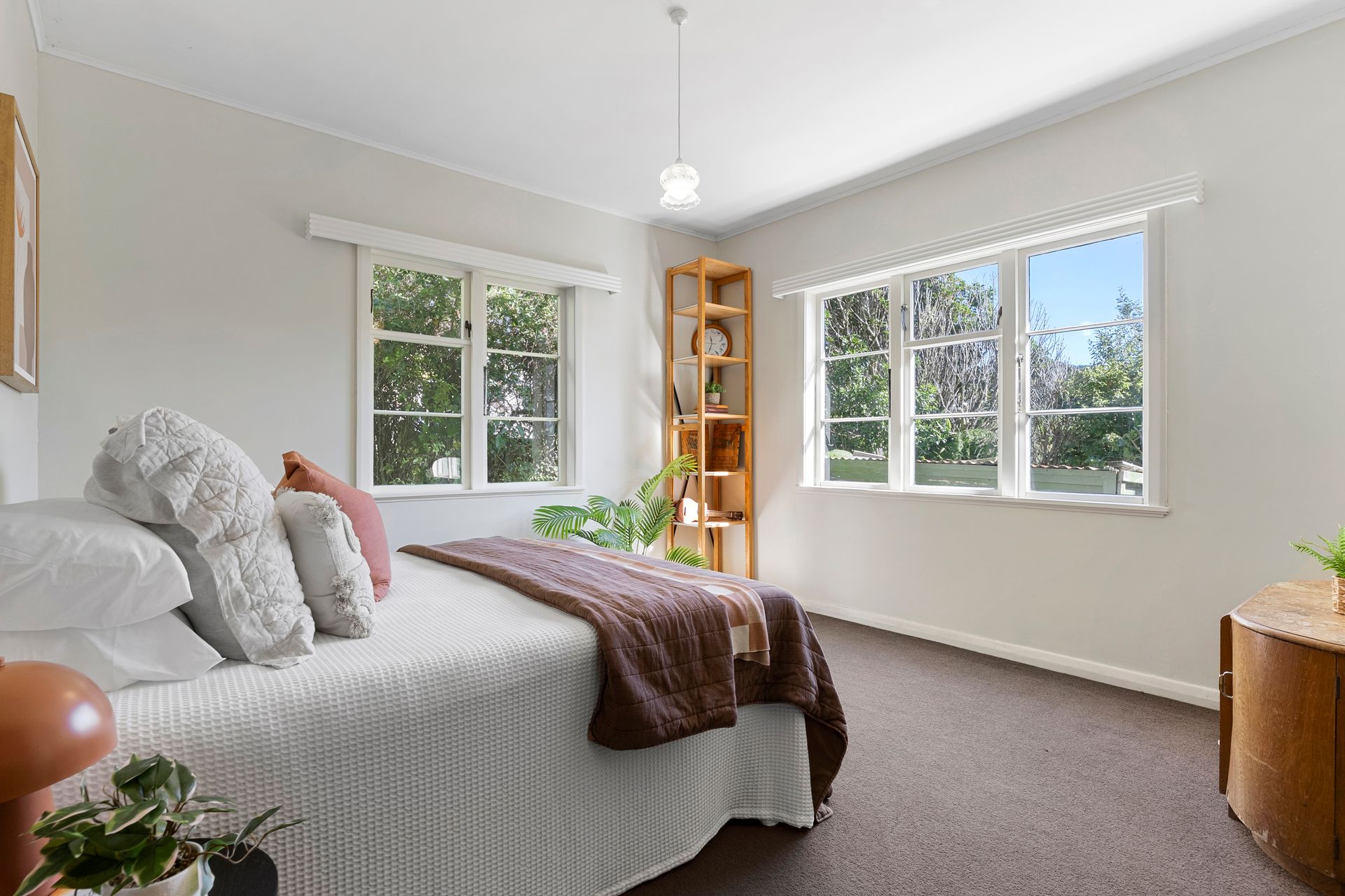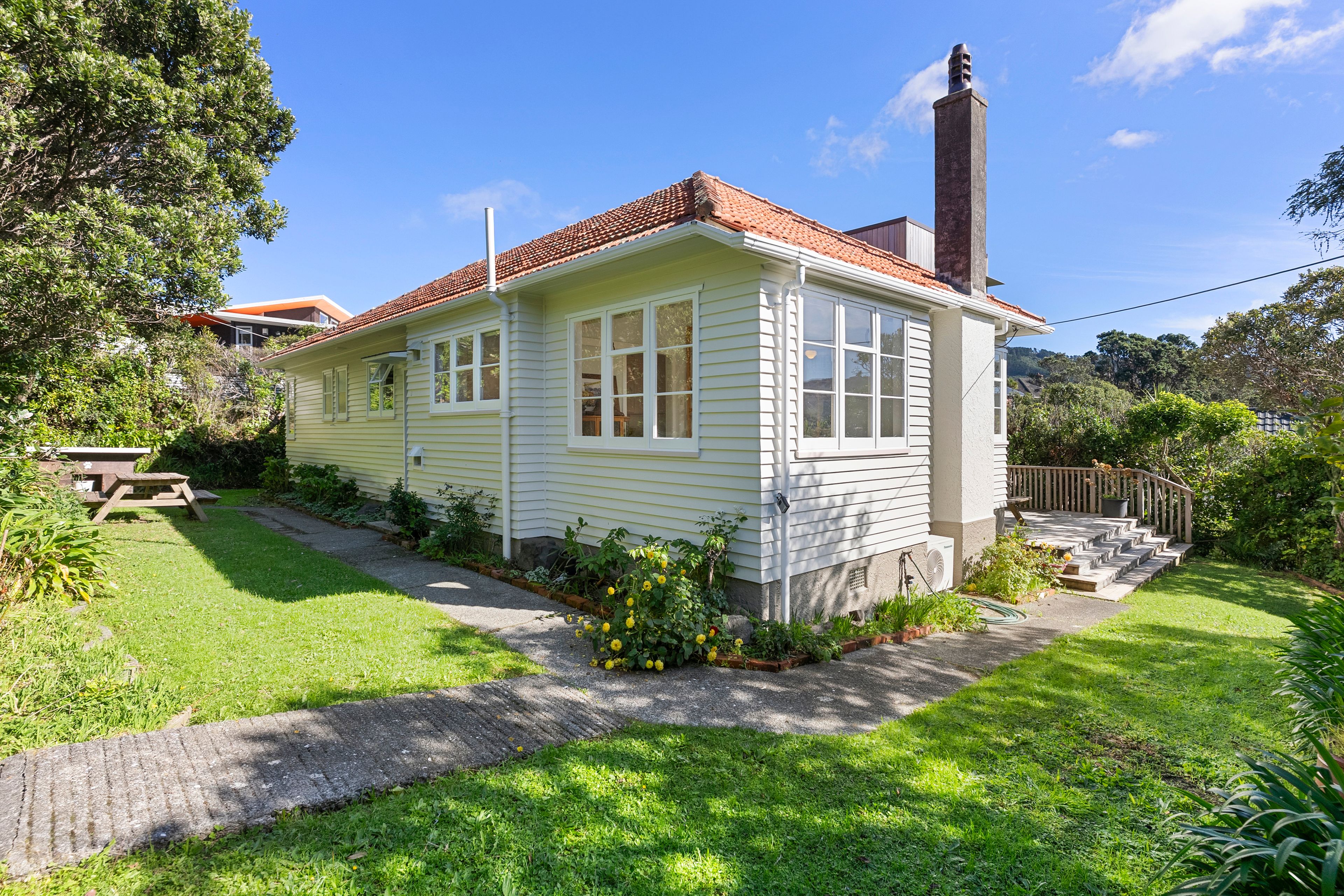 Set on a large, private site with walk-on access from both Kaihuia Terrace and Albemarle Terrace, the home enjoys a flat lawn perfect for children and pets, with terraced gardens stepping down below. There is also scope to further enhance the land over time, offering additional potential for the future.