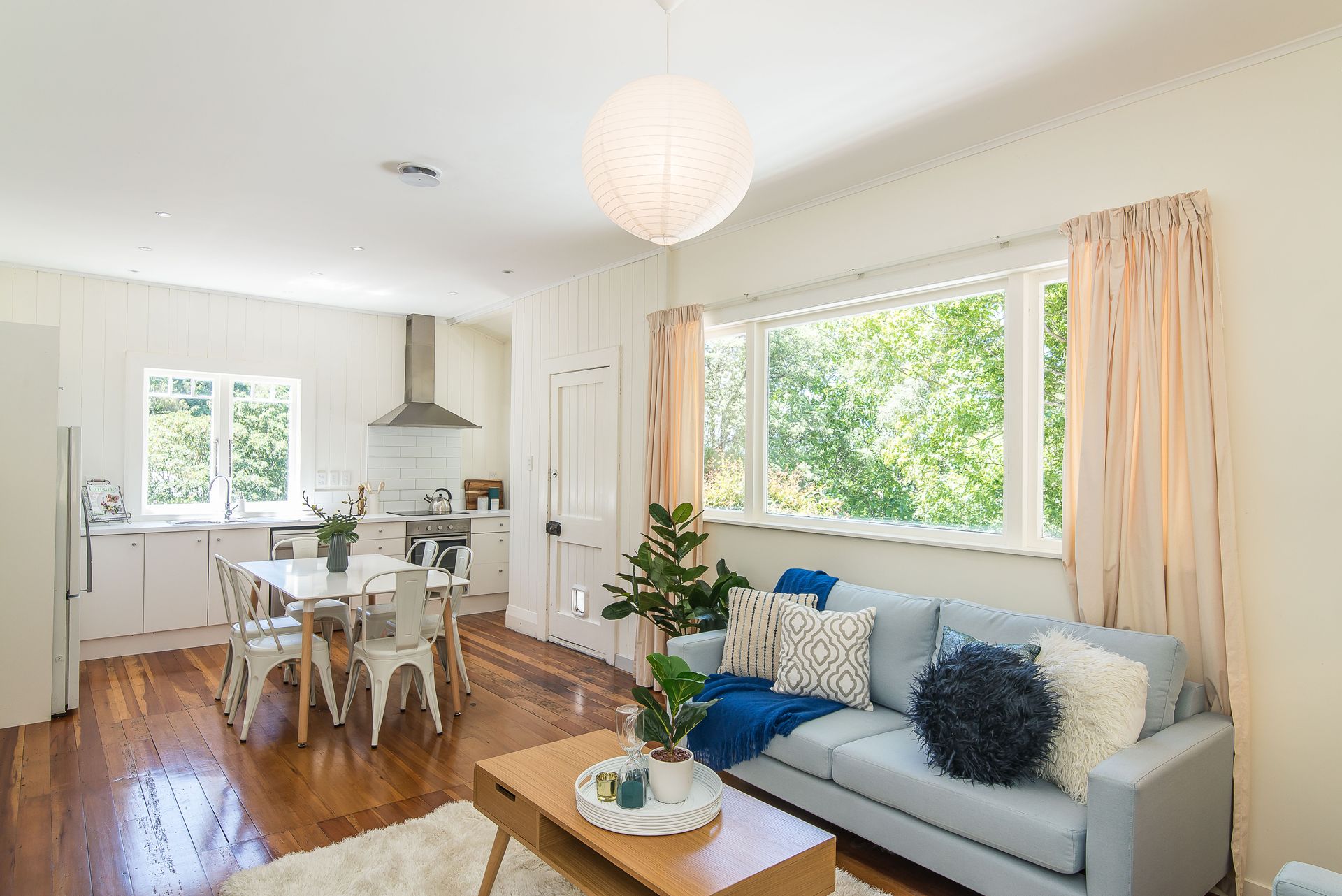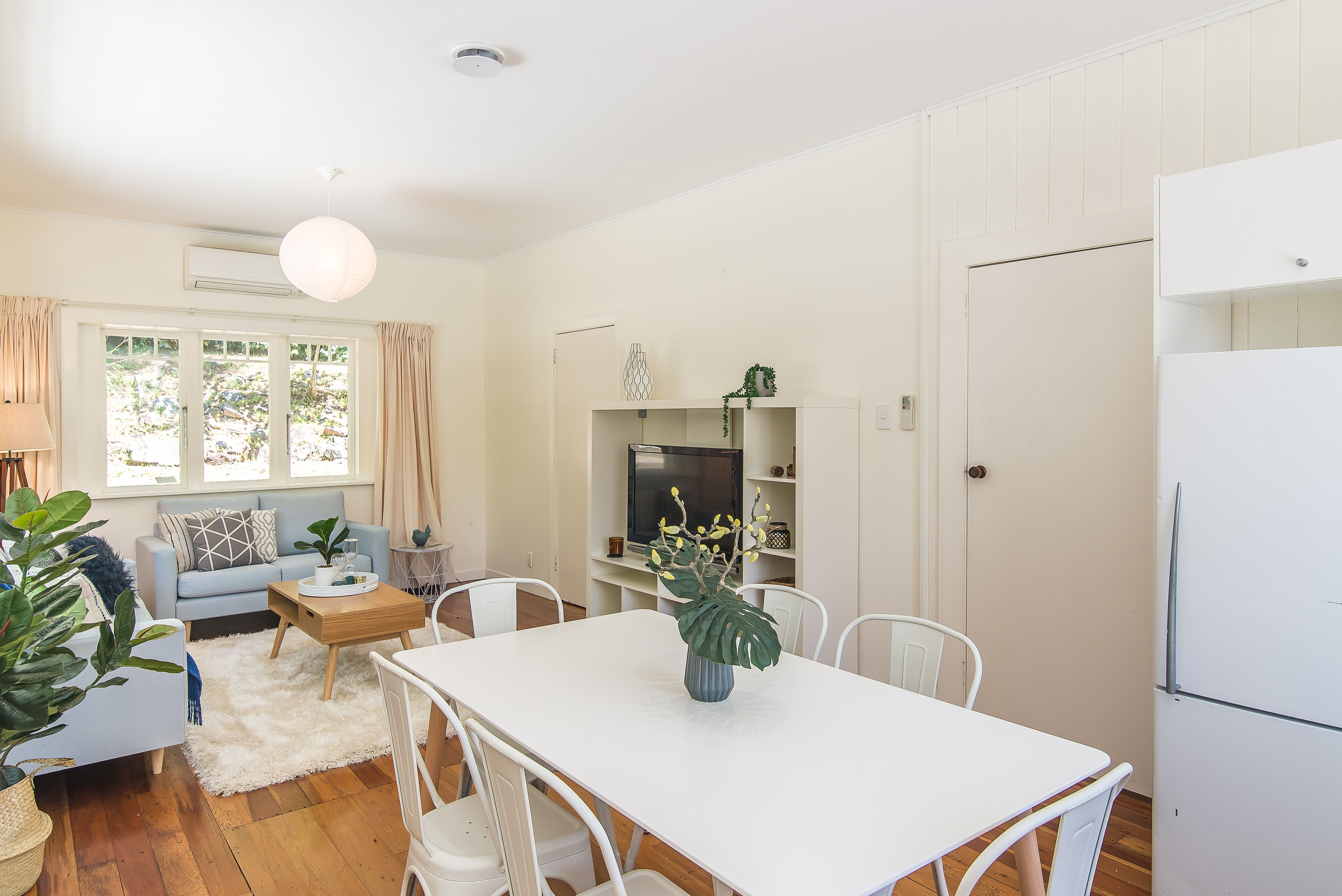 - Spacious open plan kitchen/dining and living. Complete with polished floor boards, surrounding area view and access to a generous deck, this is a great spot for relaxing and entertaining
