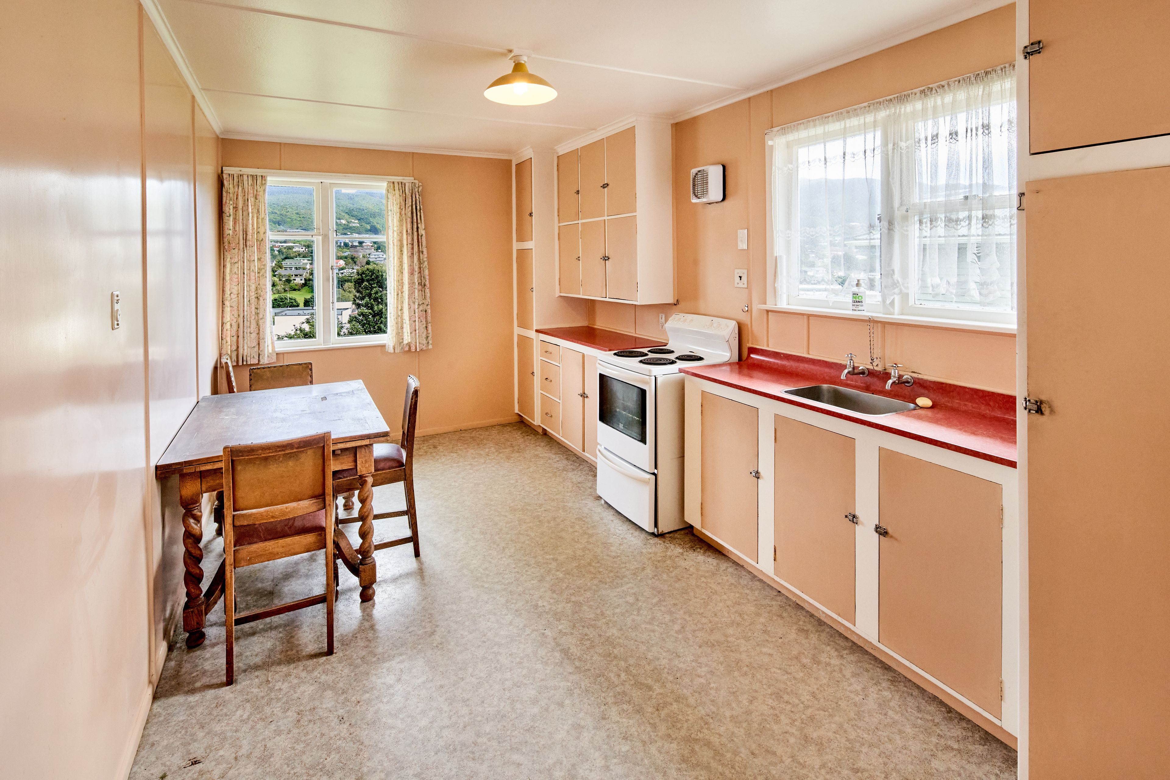 There is plenty of room inside with three bedrooms, generous lounge, and separate kitchen/dining. Whilst a little dated inside, the house has been well cared for and is filled with light and is nice and cosy with a heat pump and DVS system.