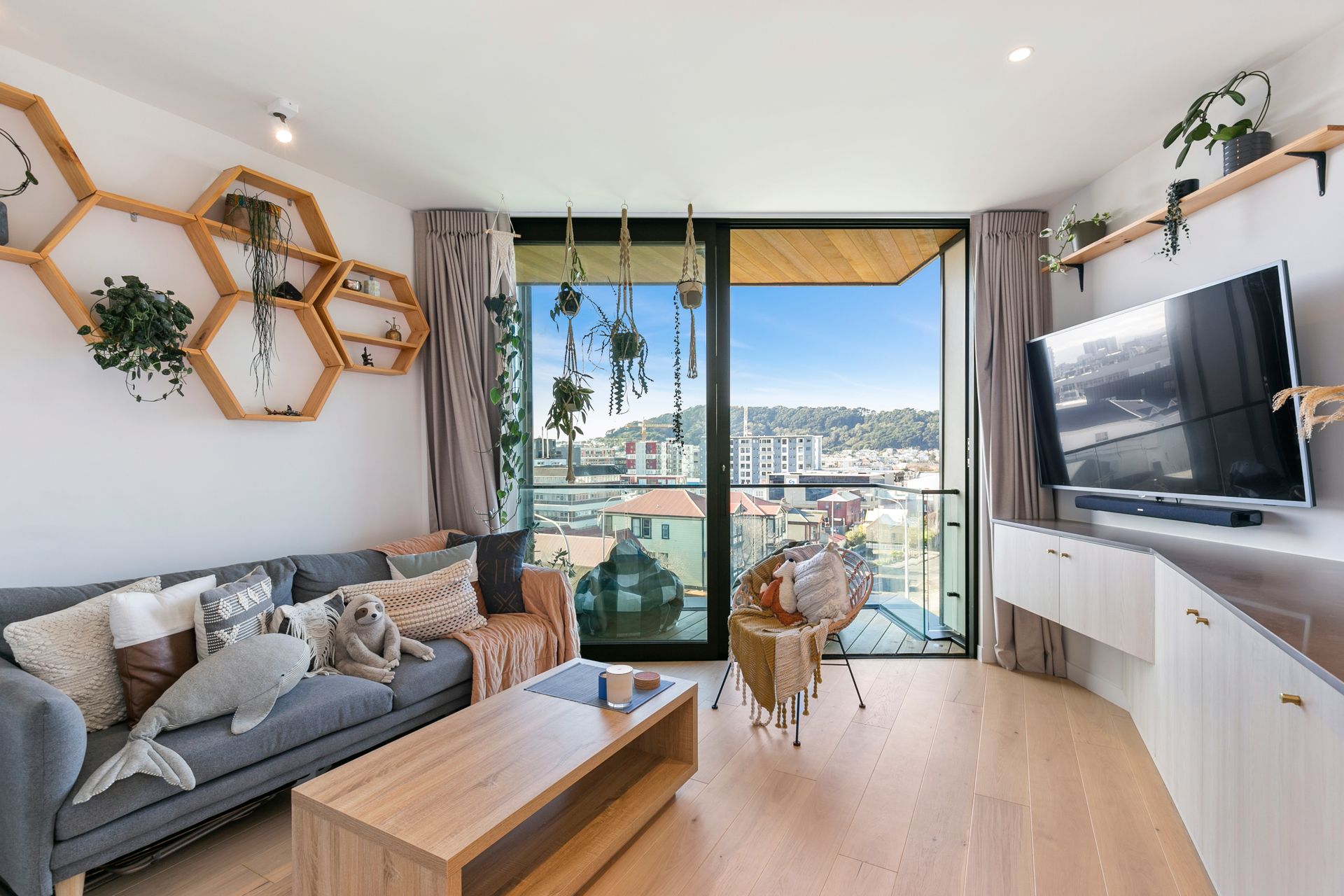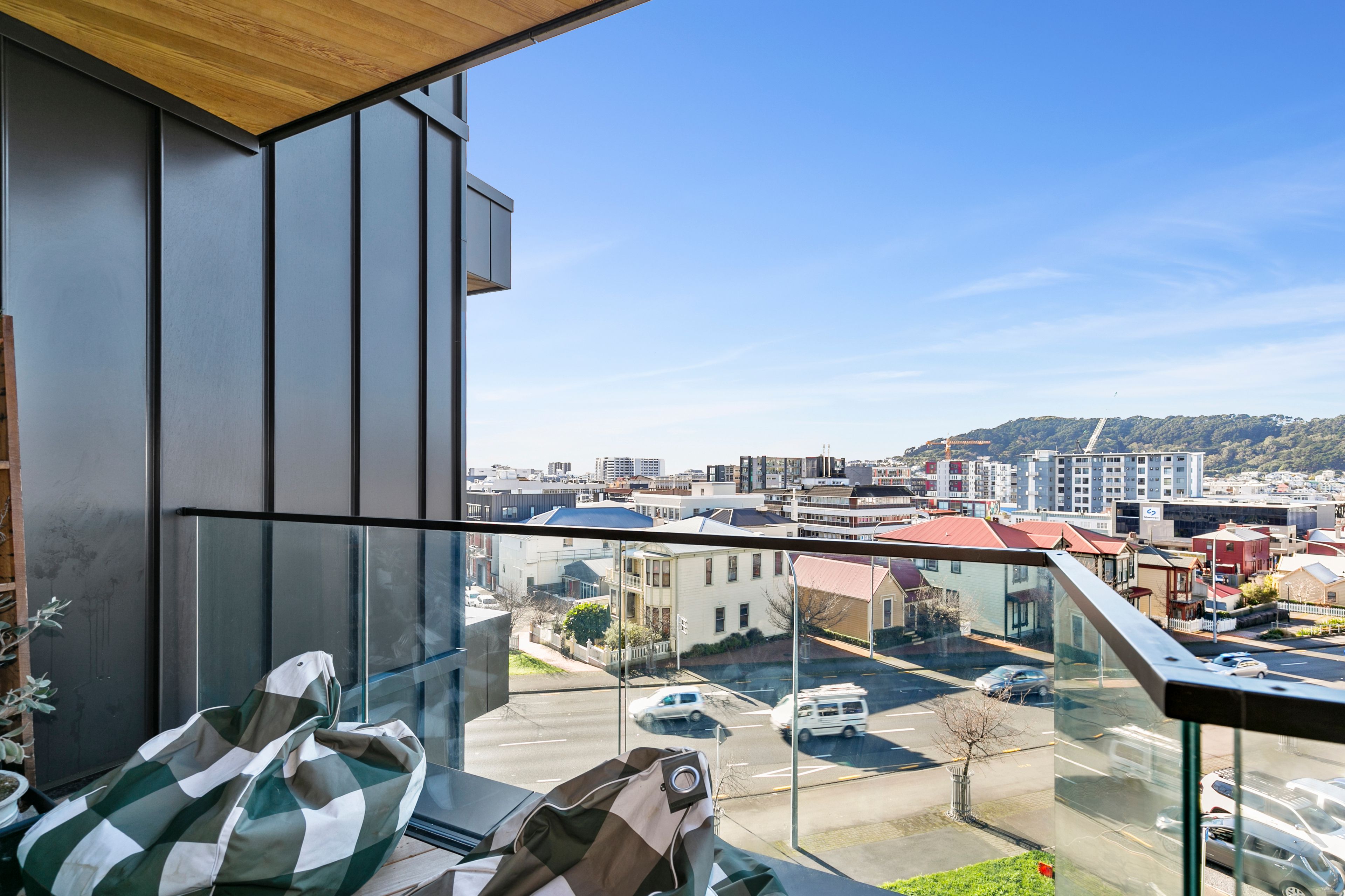 - Floor-to-ceiling double glazing with a view over the city and towards Mt Victoria