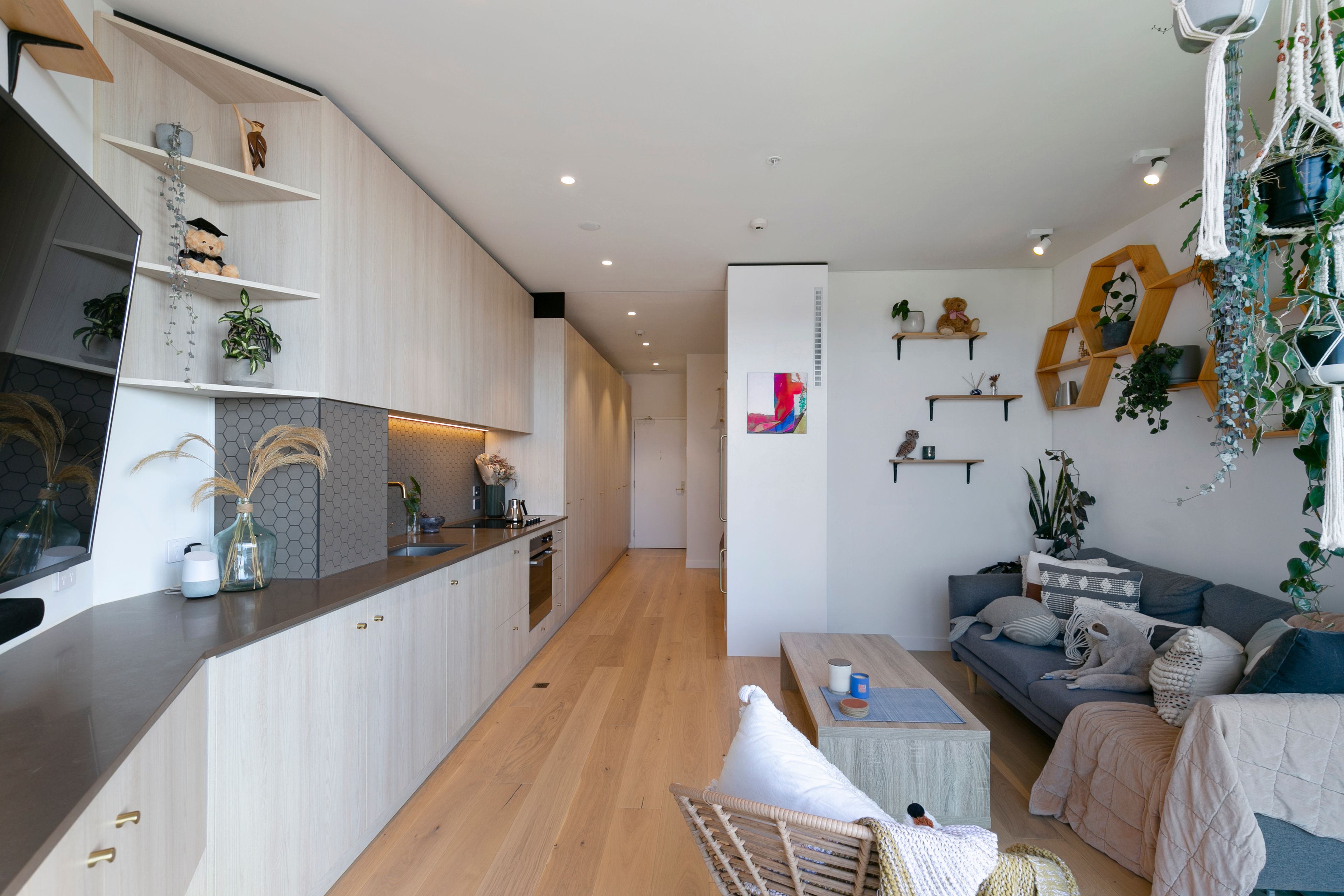 - Engineered oak flooring on acoustic underlay (exceeds NZ building code)