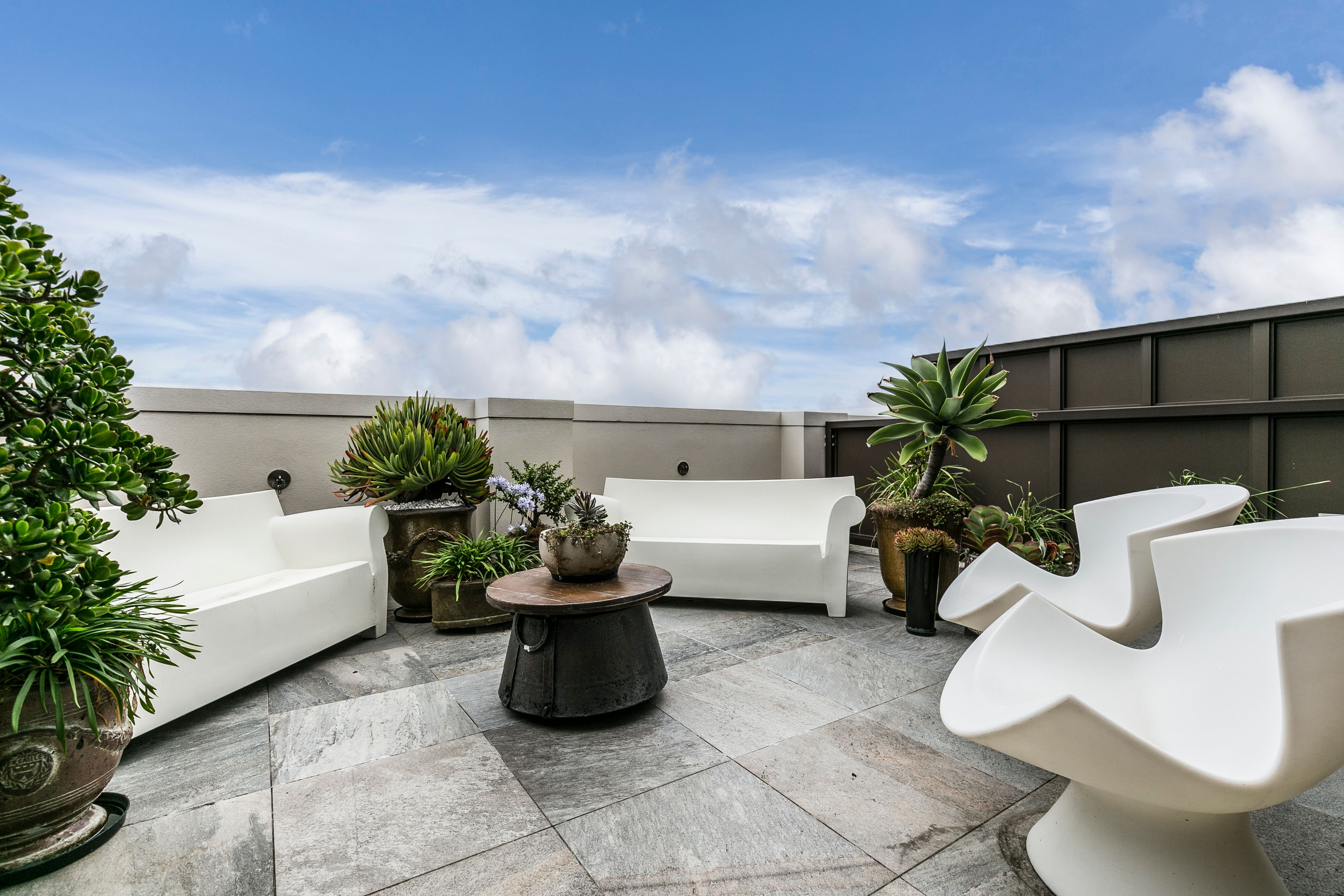 The apartment has the most spectacular terrace, creatively planted with easy care succulents and has two sets of doors opening from the living area ensuring easy outdoor entertaining. There is another west facing terrace currently housing a very productive Vegepod !