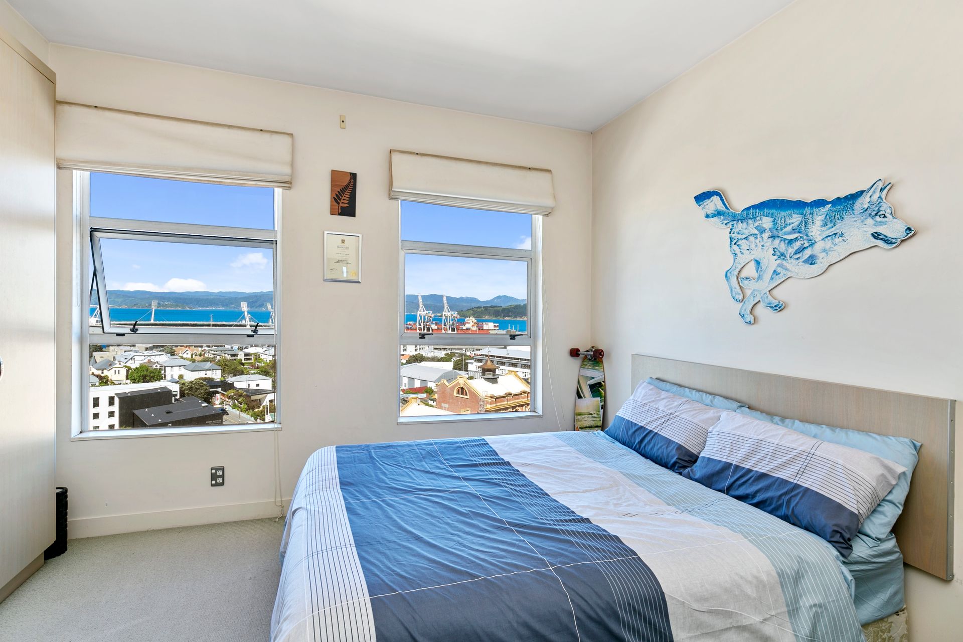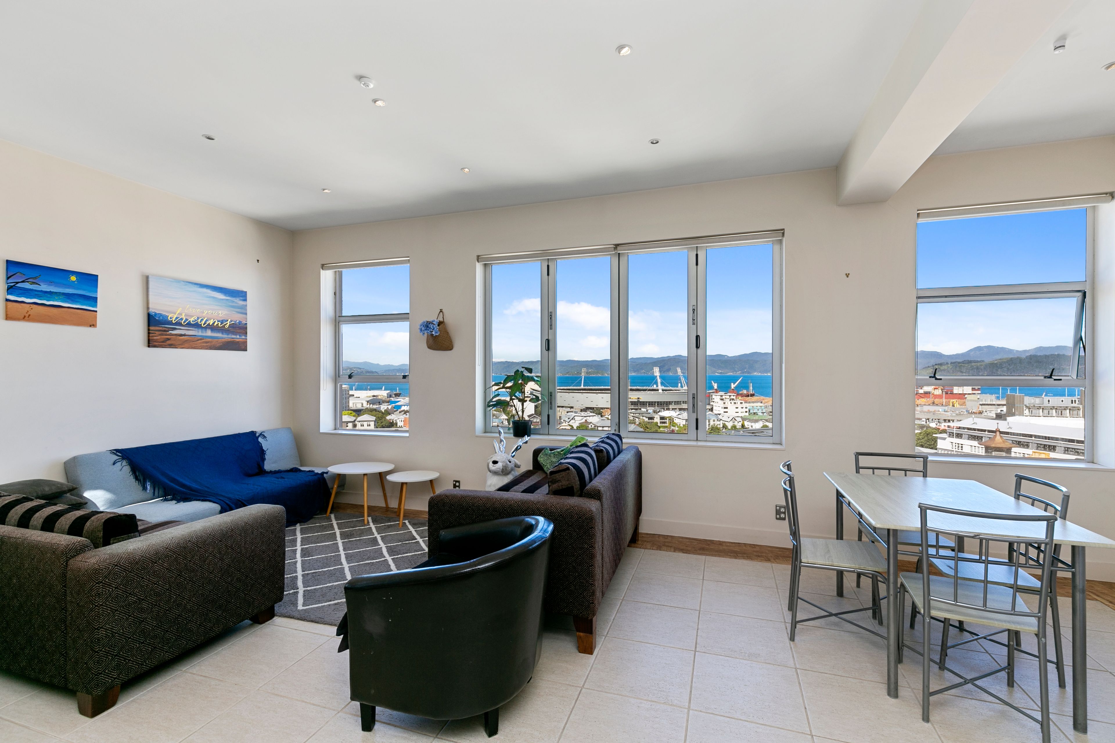 Taking in breath- taking harbour and city views from Petone to Oriental Parade, this light-filled apartment features a modern open plan kitchen connecting to a large dining and living area. The property boasts three spacious double bedrooms, and two tiled bathrooms. The master is a generous size and includes a walk in wardrobe and ensuite. There is a single on-site carpark on a separate title.