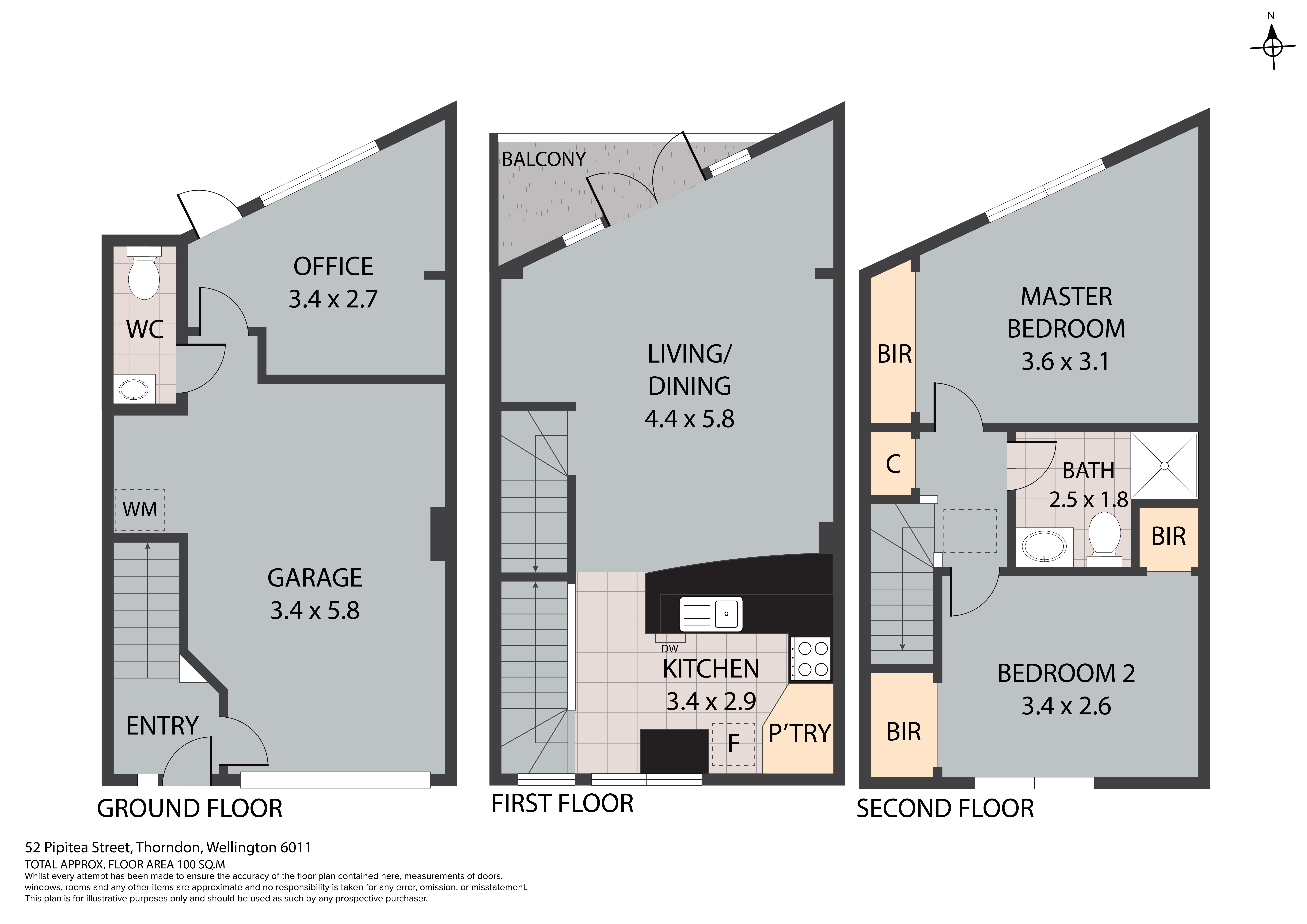 Featuring an open plan kitchen and living with French Doors opening to a north facing balcony. The upper level has two-bedrooms both with generous wardrobes and the good sized main bathroom. The ground floor features internal access garage and laundry area, a separate toilet, plus a desirable home office and courtyard.