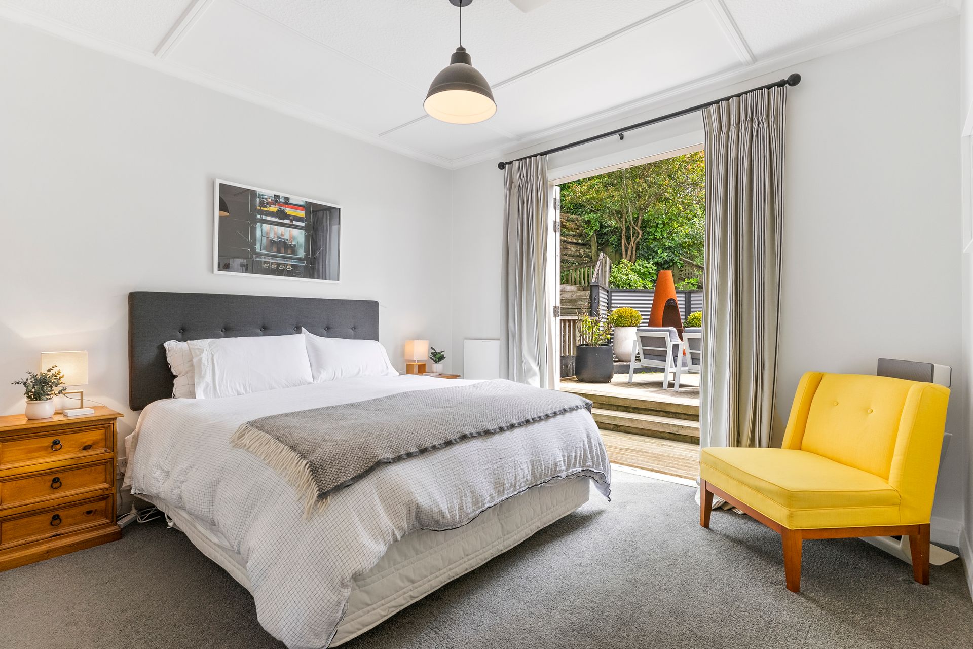At the heart of the home is a light-filled open-plan living and dining space that connects seamlessly to the outdoors. French doors spill onto an expansive deck, creating the perfect setting for morning coffee, weekend gatherings or unwinding with wine as the city lights come alive.
