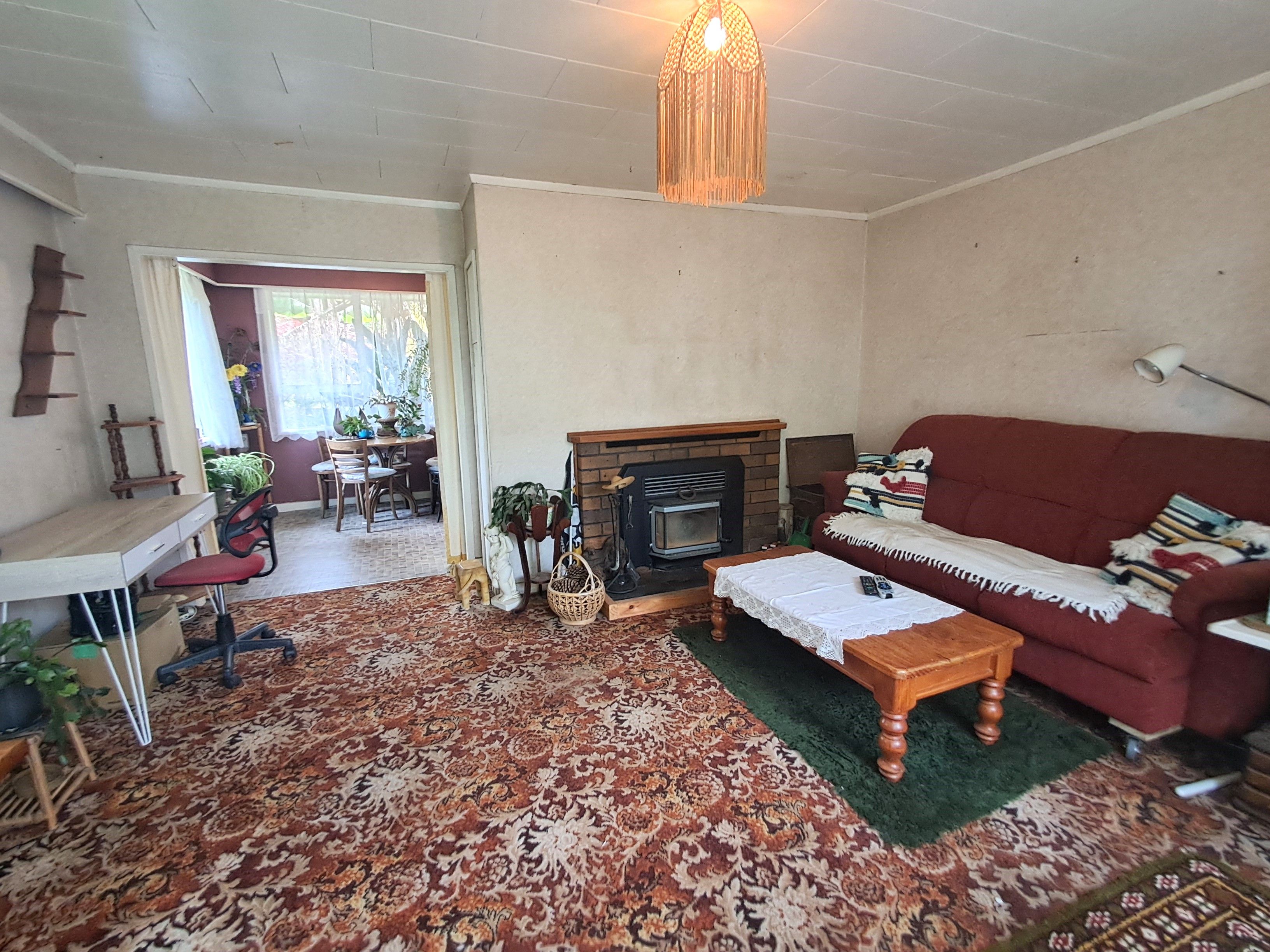 Three bedroom home separate lounge, and open plan dining and kitchen. Plenty of potential to get this 1970s property back to looking great again, aluminum joinery, concrete foundation, recent re roof, heat pump and wood fire.